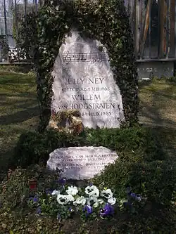 Elly Ney est membre honoraire de la rencontre Beethoven-Haus de Bonn en 1921[4] et commence une carrière américaine en 1921 (Carnegie Hall), se remariant peu de temps avec un Américain, marchand de charbon de Chicago, Paul F. Allais, en 1928. Puis en 1932, elle fonde un second trio avec Wilhelm Stross (de) et le violoncelliste Ludwig Hoelscher. Elle affichait des vues antisémites, refusant par exemple de remplacer le pianiste de confession juive Rudolf Serkin lors d'une annulation dès 1933. Elle devient membre du Parti national-socialiste en 1937, s'impliquant dans le mouvement de la Ligue des jeunes filles allemandes créée la même année. Pour ces raisons, après la guerre, elle est bannie de la scène par la ville de Bonn. Elle tente d'améliorer son image en levant des fonds (par des concerts en Europe) pour les réparations de la maison natale de Beethoven, très endommagée par les bombardements ; fonds finalement refusés par l'institution, considérant son nazisme était trop embarrassant et qu'elle était un membre « prononcée » du NDSAP. Elle est cependant nommée citoyenne d'honneur de Tutzing (à 40 km de Munich) en 1952 (Bonn ne lui retire son statut qu'en 1968, après sa mort).