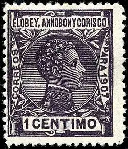 En 1906, les 1c, 2c, 3c et 4c furent réévalués en 10c, 15c, 25c et 50c, utilisant un cadre avec la valeur et "1906". Il existe une série de 1907 de seize valeurs mises à jour avec un profil plus ancien d'Alphonse XIII. Plusieurs de ces valeurs furent réévaluées entre 1908 et 1910. Au total, plus de 72 éditions sont identifiés dans le catalogue Yvert. Cependant, très rares furent les timbres utilisés, car la population très pauvre, était majoritairement analphabète. Les timbres avaient plutôt une fonction de propagande, pour véhiculer que l 'Espagne restait une puissance coloniale, après sa défaite dans la guerre contre les états-Unis, en 1898, ou elle perdit le plus gros des colonies qui lui restait : Philippines, Cuba, Porto Rico, etc.