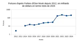 C'est le cofondateur et le président-directeur général de la société astronautique SpaceX ainsi que le directeur général de la société automobile Tesla. En , selon Bloomberg, Elon Musk devient, à 49 ans, l'individu le plus riche du monde avec une fortune estimée à 251,3 milliards de dollars. En , il devient le propriétaire de X (anciennement Twitter), par un achat à 44 milliards de dollars.