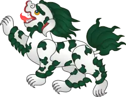 - Le lion des neiges, symbole national du Tibet, représenté, entre 1912 et 1950, par le gouvernement tibétain non seulement sur le drapeau du Tibet, mais aussi sur les sceaux de l'administration, les billets de banque tibétains, les pièces de monnaie tibétaines et les timbres tibétains, ainsi que sur le sceau du dalaï-lama[8],[9].