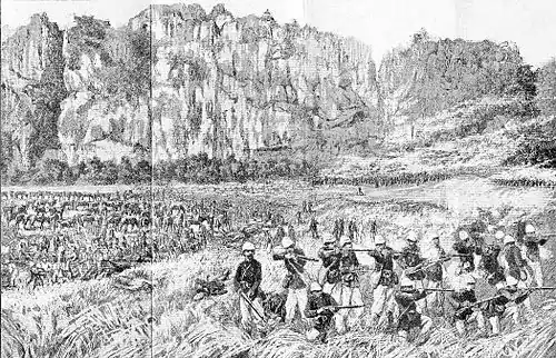 « During spring 1884, negotiations between Captain Francois Ernest Fourier and Li Hongzhang resulted in a preliminary agreement, signed on 11 May, which specified that all Chinese troops would withdraw from Tonkin and return to China, Although Li had agreed that China would retreat, the exact timetable was unclear. Thinking that the Chinese had already left Annam, a French force of 900, under Lieutenant Colonel Alphonse Dugenne, was sent to occupy Lang Son during early June 1884. Before reaching Lang Son, however, Dugenne's troops encountered a Chinese garrison near Baclé and fighting erupted. »