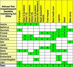 Le déploiement d'une ERU se fait en 48 h, à l'issue d'une évaluation terrain menée par une équipe spécialisée dite FACT (Field Assessment Coordination Team) accompagné par la société nationale hôte. Elles travaillent souvent aux côtés du comité international de la Croix-Rouge, garant du droit international humanitaire.