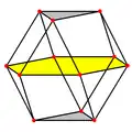 | L'arrangement hexagonal compact (HC) s'observe en fonction d'un plan triangulaire et fait alterner deux positions des sphères selon un arrangement d'orthobicoupole hexagonale dont les 12 sommets représentent la position des 12 sphères en contact avec la sphère centrale. L'arrangement cubique à faces centrées (CFC), en revanche, peut être observé selon deux plans différents, triangulaire ou carré, dans un cuboctaèdre. | ||