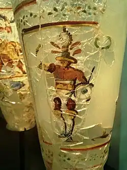 Gladiateur gréco-romain sur un récipient en verre, Begram, IIe siècle.