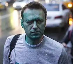 Le 20 août 2020, l'opposant russe et militant anti-corruption Alexeï Navalny a été empoisonné avec un agent neurotoxique novitchok et a été hospitalisé dans un état grave. Lors d'un vol de Tomsk à Moscou, il est tombé malade et a été transporté dans un hôpital d'Omsk après un atterrissage d'urgence là-bas, et plongé dans le coma. Il a été évacué à l'hôpital de la Charité à Berlin, en Allemagne, deux jours plus tard. L'utilisation de l'agent neurotoxique a été confirmée par cinq laboratoires certifiés par l'Organisation pour l'interdiction des armes chimiques (OIAC)[4],[5]. Le 7 septembre, les médecins ont annoncé qu'ils avaient sorti Navalny du coma provoqué et que son état s'était amélioré[6]. Il est sorti de l'hôpital le 22 septembre 2020[7]. L'OIAC a déclaré qu'un inhibiteur de la cholinestérase du groupe novitchok avait été trouvé dans le sang, l'urine, les échantillons de peau de Navalny et sa bouteille d'eau[8],[9],[10]. Dans le même temps, le rapport de l'OIAC a précisé que Navalny avait été empoisonné avec un nouveau type de novitchok, qui ne figurait pas sur la liste des produits chimiques contrôlés (en) de la Convention sur les armes chimiques[11],[12],[13].