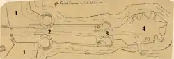 a. casemates du flanc droit (les canonnières dans le mur sont figurées en pointillés)