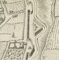 Cette enceinte était parcourue de six bastions dominant à 10 mètres au-dessus d'un fossé les entourant.