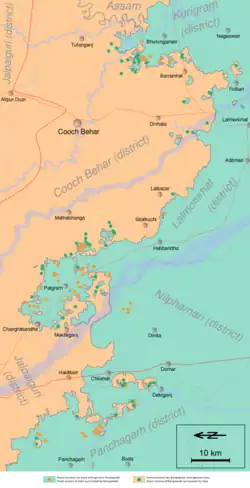 | 12 | Upanchowki Bhajni | 68,837 | 2 | Entourée par l'enclave indienne de Balapara Khagrabari (#42, #43, #47) |