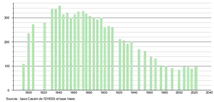 - ↑ Fiches Insee - Populations de référence de la commune pour les années 2006, 2007, 2008, 2009, 2010, 2011, 2012, 2013, 2014, 2015, 2016, 2017, 2018, 2019, 2020, 2021 et 2022.