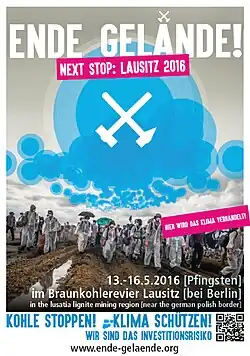 Ende Gelände 2016 fut un évènement important du mouvement de désobéissance civile Ende Gelände en Allemagne, qui visait à limiter le réchauffement climatique par l'élimination progressive des combustibles fossiles.
