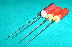 - bien nettoyer l'intérieur de cette dent, par une action mécanique : grattage de la surface intérieure des canaux pulpaires (à l'aide de limes endodontiques manuelles ou mécaniques), associée à une action chimique : irrigation avec de l'hypochlorite de sodium (eau de Javel diluée à 3 %), qui est le désinfectant le plus efficace ;
