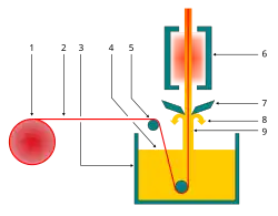 - immersion de la pièce chaude dans la matière qui va l'enrober ;