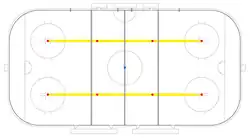 Les engagements se déroulant généralement sur des repères appelés cercle ou points d'engagement. Il y a neuf ronds sur la surface de la patinoire :