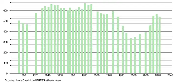 - ↑ Fiches Insee - Populations de référence de la commune pour les années 2006, 2007, 2008, 2009, 2010, 2011, 2012, 2013, 2014, 2015, 2016, 2017, 2018, 2019, 2020, 2021 et 2022.