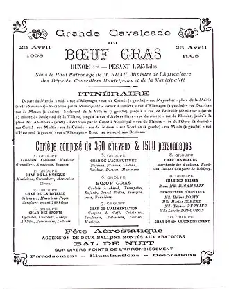 - ↑ La Cavalcade du Bœuf Gras, Le Petit Parisien, 2 avril 1906, page 2, 5e colonne.