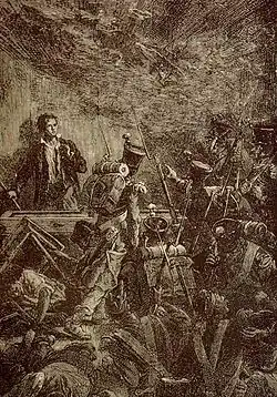 « Citoyens, vous représentez-vous l'avenir ? Les rues des villes inondées de lumière, des branches vertes sur les seuils, les nations sœurs, les hommes justes, les vieillards bénissant les enfants, le passé aimant le présent, les penseurs en pleine liberté, les croyants en pleine égalité, pour religion le ciel. Dieu prêtre direct, la conscience humaine devenue l'autel, plus de haines, la fraternité de l'atelier et de l'école, pour pénalité et pour récompense la notoriété, à tous le travail, pour tous le droit, sur tous la paix, plus de sang versé, plus de guerres, les mères heureuses ! » (Enjolras du haut de la barricade)