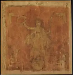 Peu de mobilier relatif aux enseignes a été retrouvé lors des fouilles archéologiques et celui découvert est plutôt tardif. Cela est probablement dû à l’importance sacrée des enseignes, qui ne sont par conséquent que rarement perdues ou abandonnées. Les quelques découvertes réalisées tendent toutefois à confirmer l’exactitude des représentations iconographiques[42]. Enfin, les sources littéraires permettent de préciser les fonctions et l’utilisation des enseignes[41].