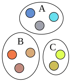 Plus précisément, soient I un ensemble d'indices, et pour chaque , un ensemble . Alors les ensembles de la famille sont mutuellement disjoints si