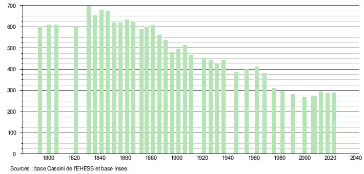 - ↑ Fiches Insee - Populations de référence de la commune pour les années 2006, 2007, 2008, 2009, 2010, 2011, 2012, 2013, 2014, 2015, 2016, 2017, 2018, 2019, 2020, 2021 et 2022.