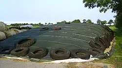 En Europe, la récupération des jus, s'il y en a, est obligatoire ; le préfanage permet de les limiter en augmentant le taux de matière sèche[14]. La récupération des bâches et emballages plastiques agricoles est organisée. Le conditionnement consiste à nettoyer plier et ficeler à la main les bâches usagées d'ensilage facilitant leur transport vers les centres de retraitement. Les plastiques d'enrubannage et les filets de bottes sont mis à part dans des sacs séparés. Pour faciliter ce travail certains agriculteurs ont mis au point un dispositif pour compresser les plastiques d'enrubannage et faire des bottes de 200 kg environ[30]. En France grâce à ce tri à la source 90 % de ces plastiques agricoles sont collectés dont plus de 70 % sont valorisés[31]. Le recyclage des pneus utilisés sur les silos est encore problématique, mais ils sont souvent remplacés par des sacs de sable.