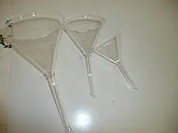 - Tube à entonnoir ou tube de sûreté (droit ou en boucle), un amalgame de pipette et d'entonnoir ;