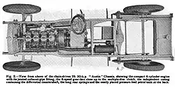 Un système d'entraînement à chaîne utilise une ou plusieurs chaînes à rouleaux pour transmettre la puissance à partir d'un différentiel vers l'essieu arrière. Ce système permet un grand mouvement vertical de l'axe (par exemple, sur les bosses), et est plus simple à concevoir et à construire qu'un arbre de transmission rigide dans une suspension. En outre, il avait moins de poids non suspendu aux roues arrière que l'arbre Hotchkiss, qui avait le poids de l'arbre de transmission et du différentiel en plus. Cela signifiait que le véhicule avait une conduite plus souple. Les masses non suspendues plus légères permettaient à la suspension de réagir aux bosses de manière plus efficace.
