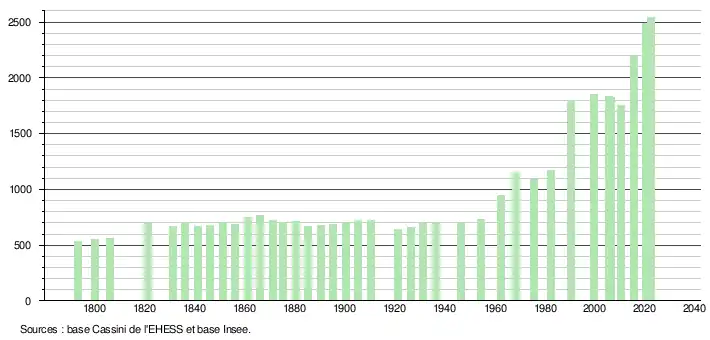 - ↑ Fiches Insee - Populations de référence de la commune pour les années 2006, 2007, 2008, 2009, 2010, 2011, 2012, 2013, 2014, 2015, 2016, 2017, 2018, 2019, 2020, 2021 et 2022.