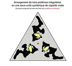 En arrangeant trois molécules identique d'une protéine quelconque, on peut former un triangle équilatéral – symétrique par rotation de 120°. Ceci est la plus petite unité possible symétrique pour former une capside icosaédrique. Comme un icosaèdre est formé de 20 triangles équilatéraux, il faut 3 × 20 = 60 molécules au moins pour faire l'icosaèdre le plus simple. Ce nombre minimal de 60 est désigné par le nombre de triangulation T = 1. De plus grandes capsides plus complexes ont des multiples entiers de 60 molécules, c'est-à-dire couramment 180 (T=3), 240 (T=4) ou 960 (T=16). Les nombres de triangulation géométriquement possibles sont donnés par la formule T = h² + hk + k² où h et k sont des nombres entiers.