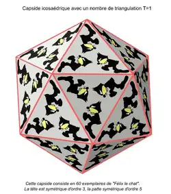 Pour une description plus précise d'une capside icosaédrique, Donald Caspar et Aaron Klug ont introduit un indice géométrique[29], appelé nombre de triangulation (T). Il caractérise la taille et la complexité d'une capside icosaédrique.