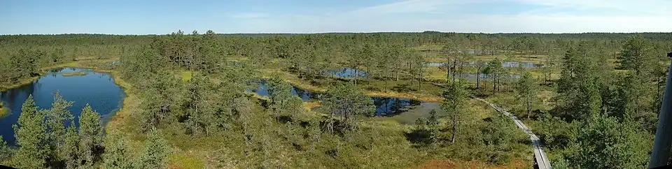 L'Estonie est un pays de terres basses marécageuses. 48 % du pays est constitué de bois et de forêts, la taïga, et 13 % de marais à tourbe. L'Estonie compte également plus de 1 400 lacs.