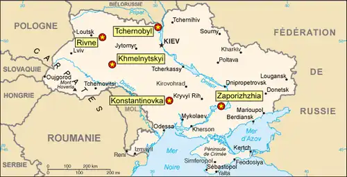 - ↑ Emma Bougerol, « Ukraine : inquiétudes autour de la sûreté des quatre centrales nucléaires situées en zone de guerre », sur basta.media, (consulté le ).