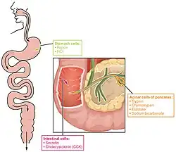 Il existe un grand nombre d'enzymes digestives. On en trouve dans la salive, où elles sont produites par les glandes salivaires, dans l'estomac, où elles sont produites dans la paroi stomacale, dans le suc pancréatique, où elles sont produites par le pancréas exocrine, et dans les intestins (intestin grêle et gros intestin). On les classe en fonction du type de substrats qu'elles dégradent :