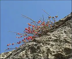 Fig.2 - Uvette (Ephedra distachya), pied femelle avec ses pseudo-"baies". Falaise calcaire du Puech Blanc, près de l' Etang de Vendres, Lespignan, Biterrois, Hérault . - (=) Ephedra vulgaris Rich.elle