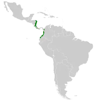 Cette espèce présente principalement au Costa Rica, mais aussi au Nicaragua et dans l'ouest du Panama. Elle peut parfois aussi se trouver dans les basses terres de la Colombie et de l'Équateur, et a quelquefois été observée au Honduras.