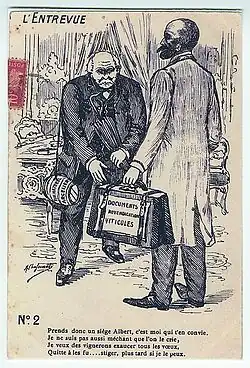 Au cours de leur entrevue, il fait promesse de réprimer la fraude si, en contrepartie, Albert retourne dans le Languedoc pour calmer la rébellion. Son interlocuteur accepte même de se constituer prisonnier. Clemenceau lui signe un sauf-conduit pour retourner dans l’Aude et lui remet cent francs pour payer son retour en train. Marcelin Albert a la naïveté d'accepter[10],[5].