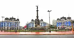 - ↑ Dans la littérature, la question de l'apparence de la colonne est présentée de diverses manières. Certains pensent qu'il s'agit d'une colonne ressemblant à l'éperon de la proue du navire, utilisée pour le pilonnage, surmontée d'une statue de Niké ou du ministre Galvez, d'autres la considèrent comme une colonne ordinaire avec un buste de Galvez.