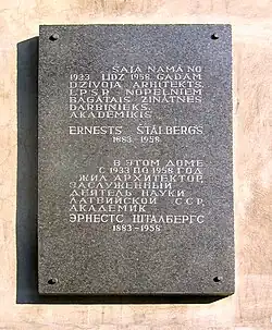 Ernests Štālbergs, (né Ernst Stahlberg le à Libau - mort à Riga) est un architecte letton d'ascendance germano-balte dont les œuvres sont de style néoclassique et fonctionnaliste[1].