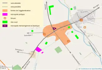L'agglomération antique semble se développer vers le milieu du Ier siècle sous le règne de Claude et connaître son apogée dans les deux siècles qui suivent. Les monnaies retrouvées attestent de la poursuite de l'occupation jusqu'à la fin du Ive siècle[4].