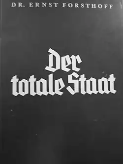 L'ouvrage le plus connu de Forsthoff est Der totale Staat, publié en 1933. dans lequel Il tente d'exprimer quelques réserves sur l'image de soi politique du mouvement nazi, qu'il reconnaît comme :