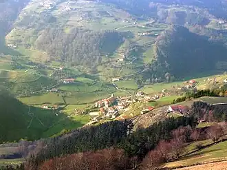 Le noyau du village, situé dans le fond de la vallée d'Errezil, se trouve à quelque 300 mètres d'altitude.