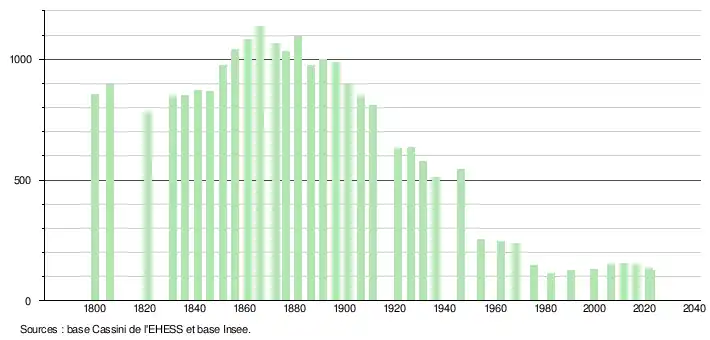 - ↑ Fiches Insee - Populations de référence de la commune pour les années 2006, 2007, 2008, 2009, 2010, 2011, 2012, 2013, 2014, 2015, 2016, 2017, 2018, 2019, 2020, 2021 et 2022.
