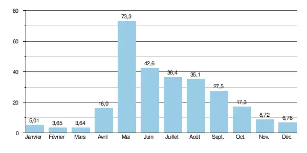 En ne considérant que la période estivale, la plus importante car libre de glaces (de mai à septembre inclus), le débit mensuel minimal observé a été de 14,7 m3/s en , ce qui restait encore assez abondant.