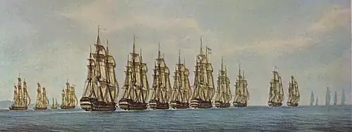 Du temps de la marine à voile, une escadre était un groupe de navires de ligne, sous les ordres d'un amiral[3]. Pour décrire une escadre importante, ou flotte de guerre, on employait souvent le terme « d’armée navale », formation qui était elle-même classiquement divisée en trois escadres : l’avant-garde, commandée par le vice-amiral, le corps de bataille sous les ordres de l’amiral et l’arrière-garde, commandée par le contre-amiral[4].