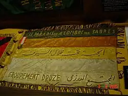 L'étoile à cinq branches des Druzes est présente avec ses cinq couleurs vert-rouge-jaune-bleu-blanc sur le tablier des trompettes du groupement druze[11]. Sous forme ajourée (semblable à l'étoile marocaine), elle est présente sur les pattes de col et l'insigne du groupement marocain.