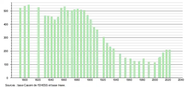 - ↑ Fiches Insee - Populations de référence de la commune pour les années 2006, 2007, 2008, 2009, 2010, 2011, 2012, 2013, 2014, 2015, 2016, 2017, 2018, 2019, 2020, 2021 et 2022.