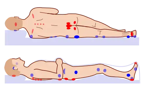 La pression (la force de l'appui par rapport à la surface d'appui) provoque la fermeture des vaisseaux sanguins cutanés, voire sous-cutanés, puis une hypoxie tissulaire en supprimant la circulation sanguine, mais c'est la prolongation de cette pression qui engendrera la formation d'une escarre[10]. Tout dépend donc de l'intensité, de la durée (ou répétition), mais aussi de la dureté du support[11].