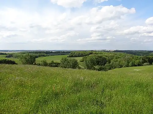 La commune (ici vue depuis ses hauteurs) s'inscrit dans un cadre rural.