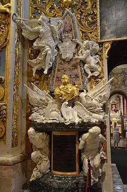 Mais les Hospitaliers développèrent ce système pour en faire un pivot de leur activité économique pendant plus de deux siècles[18]. C'est ce modèle économico-militaire qui entretiendra si durablement le système esclavagiste à Malte. À ce titre le tombeau du Grand maître Nicolas Cotoner, soutenu par deux statues d'esclaves est une fine métaphore du système économique des Hospitaliers.