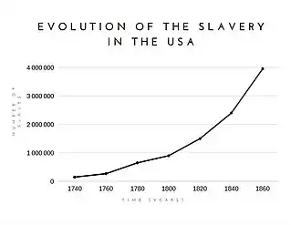 L'évolution démographique de la population des esclaves aux États-Unis constitue une originalité par rapport à celle de ses voisins américains. Bien que n'ayant « importé » qu'environ 6 % de la population d'esclaves du continent, les États-Unis comptèrent rapidement une population d'esclaves plus importante que celles des Caraïbes ou du Brésil[réf. souhaitée]. En 1810, soit deux ans après l'interdiction officielle de la traite, les États-Unis comptaient 1,1 million d'esclaves, soit un plus du double de leur « importation » totale[57]. En 1860, cette population avait presque quadruplé pour atteindre un total de 4 millions. En comparaison, il ne restait en Jamaïque en 1834 que 311 000 des 750 000 Africains déportés par l'ancienne colonie britannique.