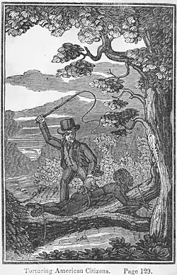 « Cependant il ne faut jamais oublier que ce même « capitalisme social » des plantations du sud était essentiellement basé sur l'usage de la terreur. Même le plus gentil et humain des maîtres savait que seule la menace de la violence pouvait obliger les équipes d'esclaves à travailler de l'aube jusqu'au crépuscule avec, selon un témoin contemporain, « la discipline d'une armée régulière entraînée ». De fréquentes séances de flagellations publiques étaient là pour rappeler à chaque esclave la punition pour un travail inefficace, une conduite indisciplinée ou le refus de se plier à l'autorité d'un supérieur[Note 12],[60]. »